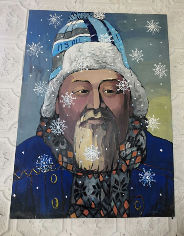 А вот произведение 2019 года “Снеговик”, где герой является символом глобализации: на голове у него казахский айыр-колпак, расписанный славянскими узорами, на шее – красно-белый шарфик, напоминающий о католическом Рождестве, – рассказывает Аньес.