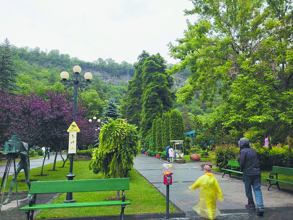 Пещеры вокруг Кутаиси – Прометея и Сатаплия – уже заезженные туристические объекты, но если вы в Грузии впервые, то советую их посетить. Цена за вход – 17,5 лари (2 800 тенге) на взрослого. Кроме того, всего в получасе езды от Кутаиси есть два каньона – Окаце и Мартвили. Красивейшие водопады, катание на лодке и проход по мосту над горной рекой никого не оставят равнодушными. Еще минут 40 на машине – и вы окажетесь на берегу реки, где есть небольшие бассейны с целебной водой. Купание моментально снимает боль в ногах – подтверждаю. А вообще, вокруг Кутаиси множество санаториев, где лечат минеральной водой, причем вода везде разная.