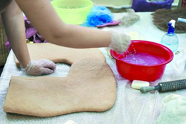 – Поэтому мы привозим готовую белую шерсть и сами красим, – поясняет предприниматель. – Для нас это на порядок дешевле, чем если бы мы покупали окрашенное сырье. Когда стало ясно, что мы хотим не пару тапок в день делать, а больше, мы поняли, что не обойтись без чесальной машины. Я написала письмо в ПРООН, и нас поддержали.