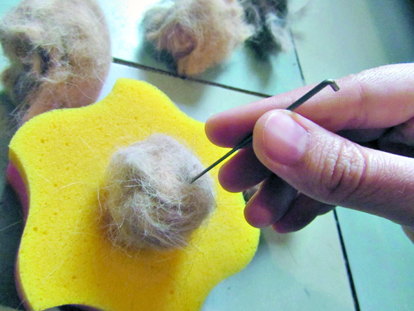 Понятно, что это накладные расходы. По словам Татьяны, они пробовали покупать сырье у местных хозяйств, но ничего не вышло. Для ручной работы нужна первосортная шерсть от овец-мериносов, мягкая и длинная. Такую состригают со спины и боков овечек, куда попадают прямые солнечные лучи. Можно использовать кросс-брит, грубоватый сорт, подходящий для объемных форм, например, цветочков или шляпок. Но в Восточном Казахстане, где занимаются только мясными породами, и такого не найти.