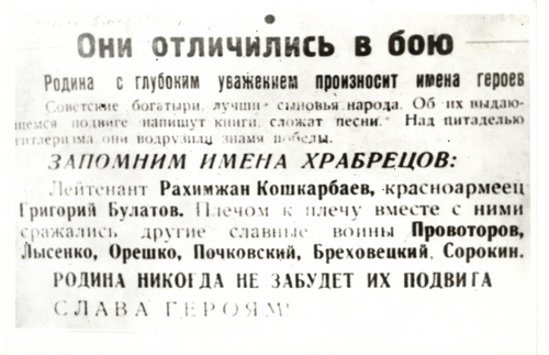 На самом деле первыми, кто пробился к рейхстагу с кумачом – это произошло после полудня 30 апреля – были 20-летний лейтенант казах Рахимжан Кошкарбаев и 19-летний Григорий Булатов, русский.