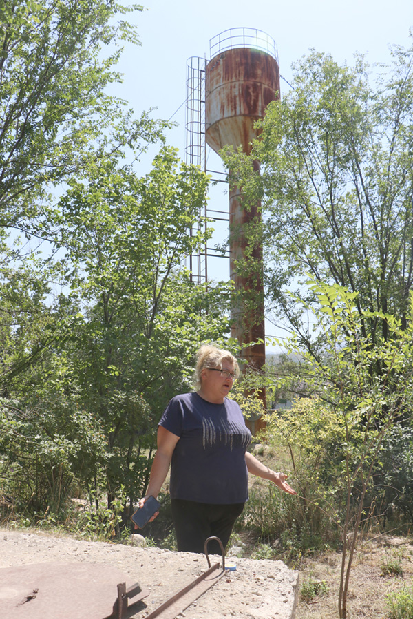 Бетонное ограждение здесь снесено. Вход на территорию, где накопители с водой, – свободный. Повсюду валяются мусор, бутылки, использованные шприцы, останки собачьих шкур – последствия пиршества бомжей. Резервуары были открытыми, год назад люди добились, чтобы их закрыли крышками с замками. Мы проверили – в них есть дыры, и можно бросить всё что угодно в воду, которую пьет большая часть поселка.