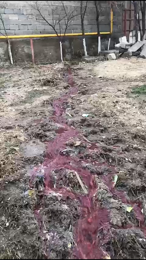 Жалуются люди и на слив отходов фермерского хозяйства в арык. Прислали видео, на котором видно, как из-под строения бежит кровь – с их слов, местный житель режет свиней. Санитарной службе, похоже, до этого дела нет.