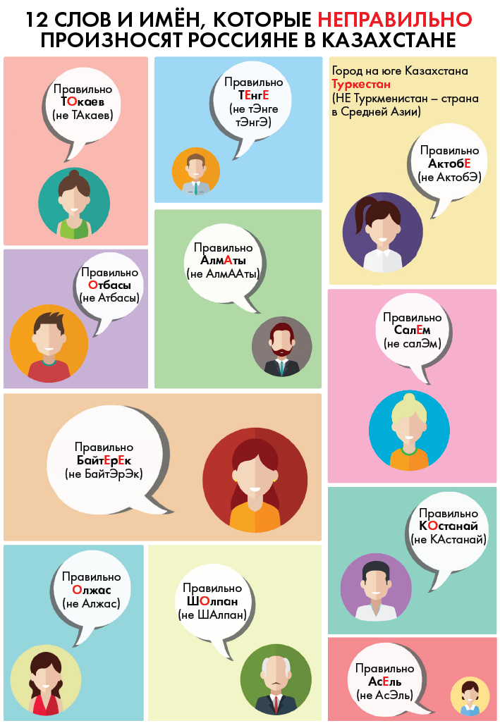 Многие приезжие неправильно произносят казахские слова, имена, фамилии и наименования казахстанских городов.