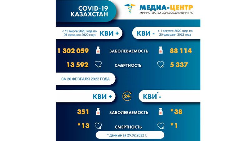 За прошедшие сутки в Казахстане зафиксировали 351 новый случай заражения КВИ.