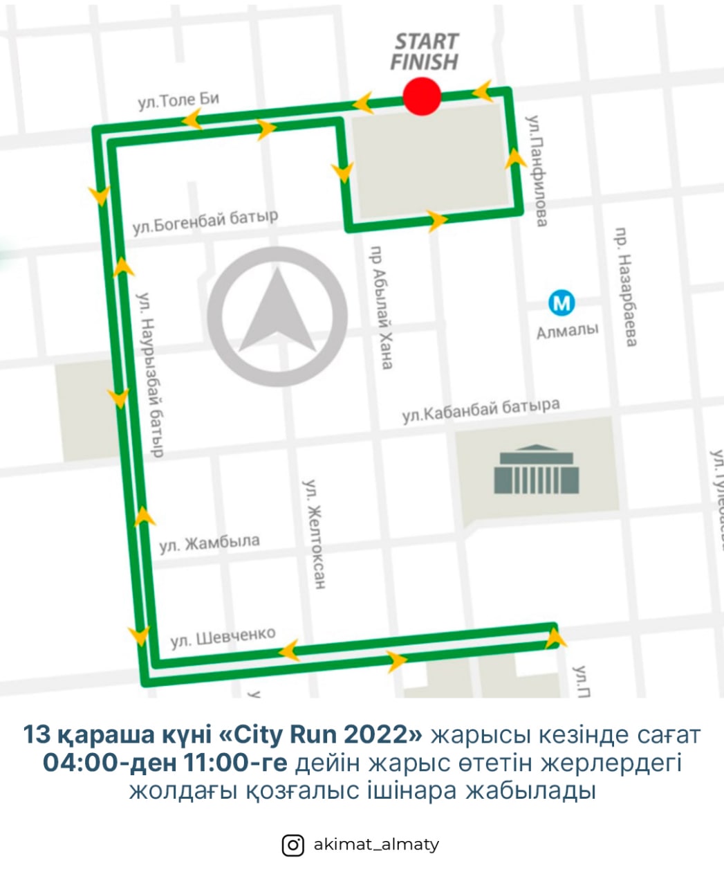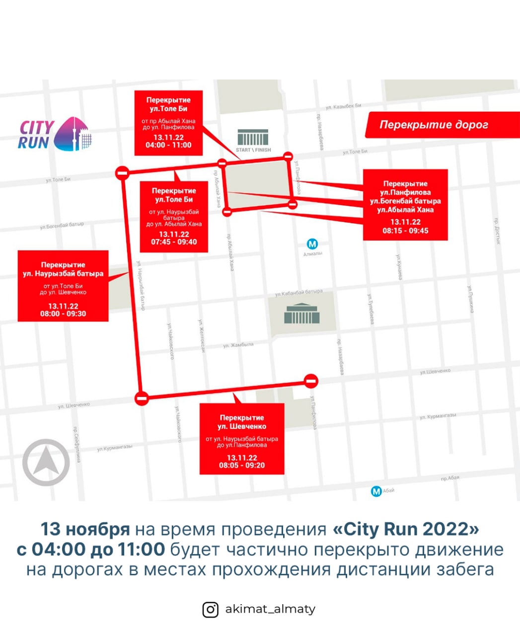 В этот день с 04:00 до 11:00 будет частично перекрыто движение на дорогах в местах прохождения дистанции забега.