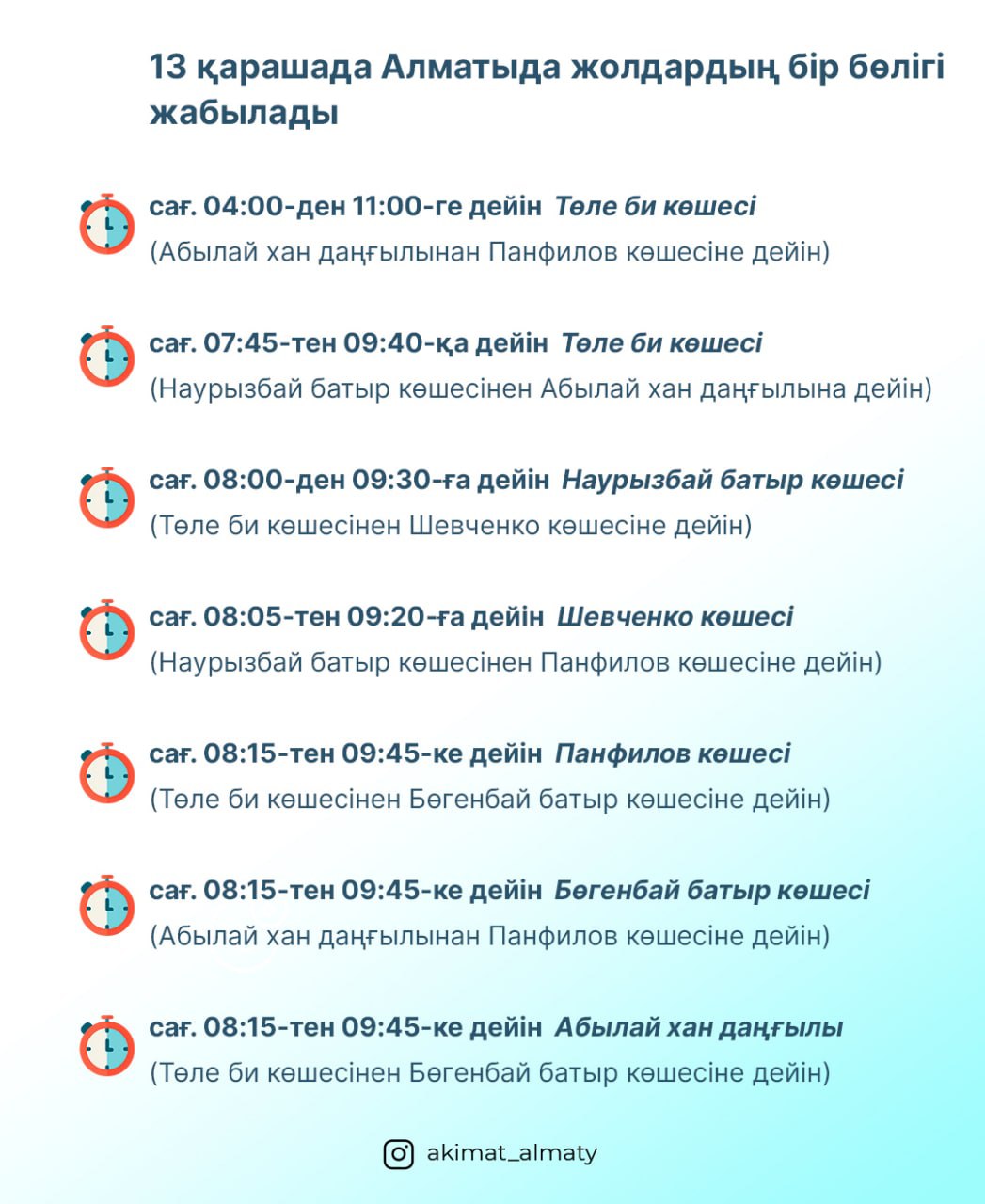 Об этом сообщает Caravan.kz со ссылкой на Акимат Алматы.