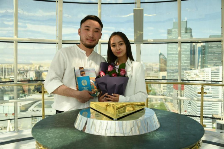 В преддверии Дня семьи, который в Казахстане отмечается 15 мая, молодожены в торжественной обстановке получили свидетельства о браке на вершине монумента "Байтерек", сообщает официальный сайт акимата.