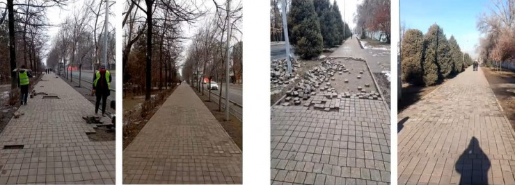 Разобрано 2025 квадратных метров брусчатки на тротуарах, покрытие тротуаров восстановлено.
