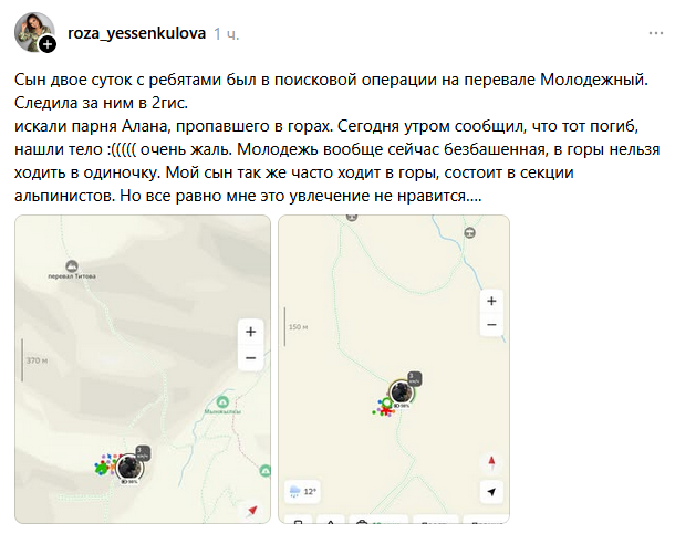 В тот же день, в 23:02, в Медеуском районе была начата поисково-спасательная операция, были задействованы беспилотники.