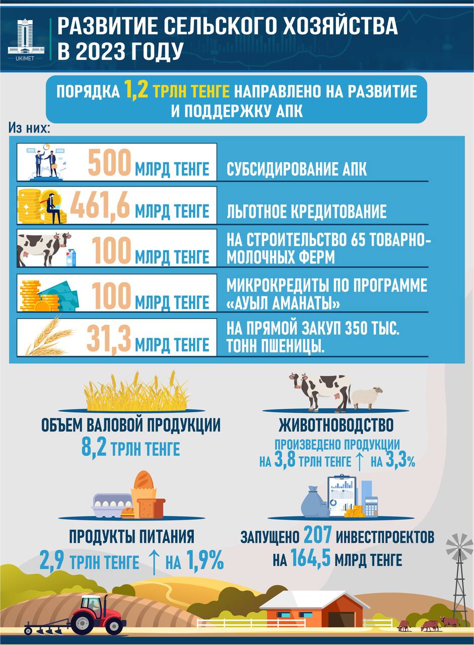 Отмечается, что по поручению президента ведется масштабная реализация программы повышения доходов сельского населения «Ауыл аманаты» путем развития сельхозкооперации. В 2023 году на эти цели выделено 100 млрд тенге.