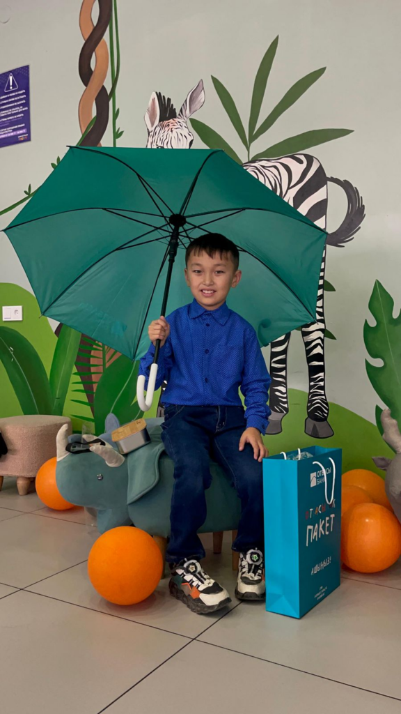 Юбилейного держателя депозита «AQYL» зовут Ахмет Курмаш. Сберегательный счет ему открыла его мама в Отбасы банке. Мальчик мечтает стать профессиональным спортсменом и сейчас активно занимается футболом. У Ахмета большая семья и о том, как накопить деньги на образование детей родители задумывались давно.