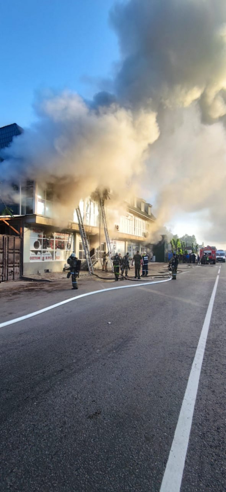 Сообщается, что 16 мая в 05:52 утра силы и средства ДЧС выехали по повышенному рангу на сообщение о пожаре в микрорайоне Карасу. По прибытии обнаружено горение открытым пламенем подвального помещения двухэтажного здания с мансардой. В нарушение требований правил пожарной безопасности, под навесом, вплотную пристроенного к зданию осуществлялось складирование пиломатериалов, картонных коробок и других элементов корпусной мебели.