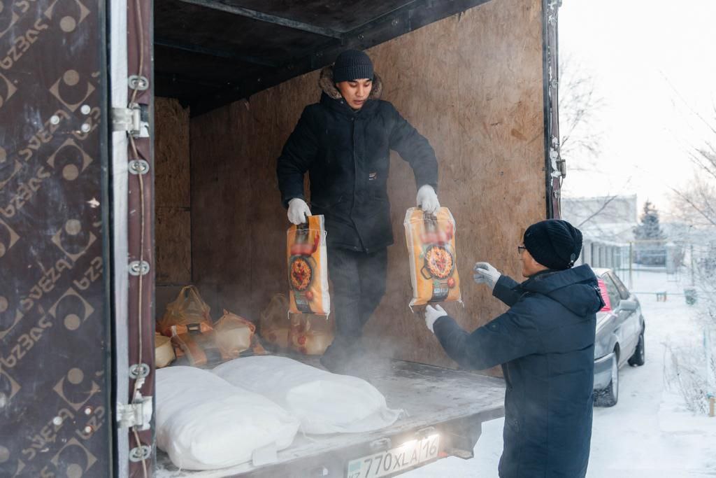 В рамках акции малоимущие, пенсионеры и многодетные семьи, проживающие в 9 областях Казахстана, получают продуктовые наборы.