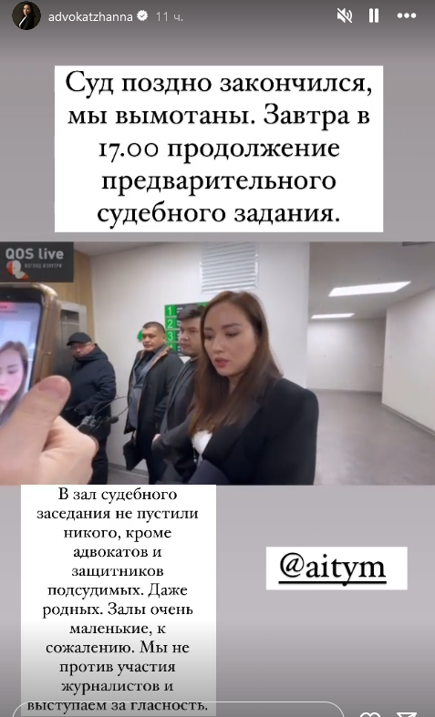 Адвокат Жанна Уразбахова, которая представляет интересы семьи Салтанат Нукеновой, сделала краткое заявление по итогам первого заседания.
