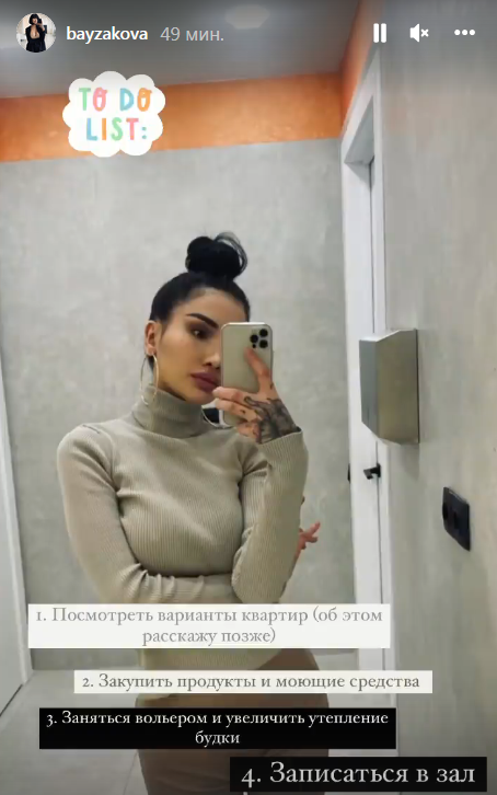 Также Айжан поделилась ближайшими планами. Она собирается посмотреть варианты квартир, совершить покупки, обустроить собаку и записаться на занятия спортом.