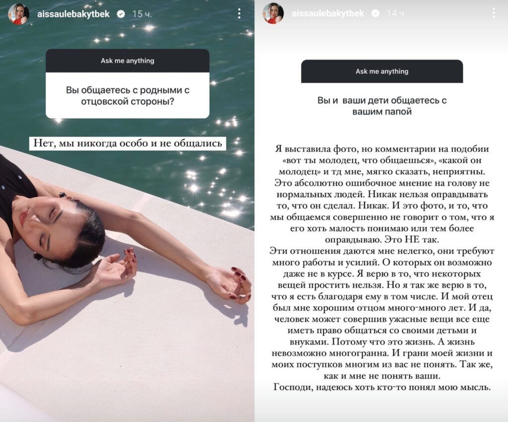 «Нет, мы никогда особо и не общались«, — так Айсауле ответила на вопрос о родственниках отца.