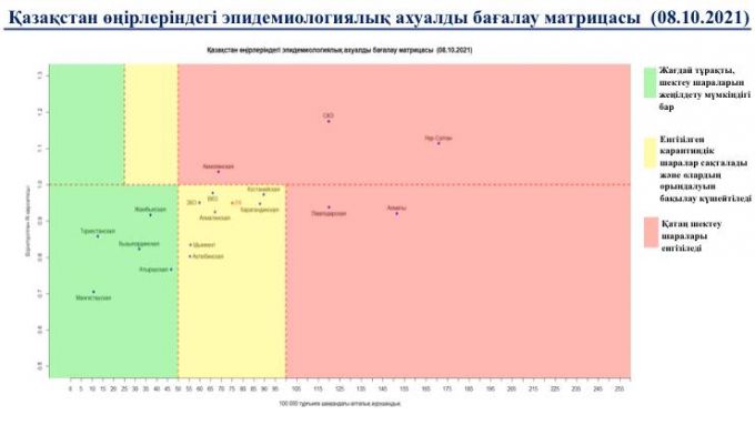 Матрица оценки эпидемиологической ситуации в регионах Казахстана на 8 октября 2021 года: