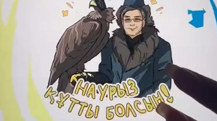 На "бесконечном" и зрелищном видео есть юрты, домбра, алтыбакан и стикер с главой государства Касым-Жомартом Токаевым.