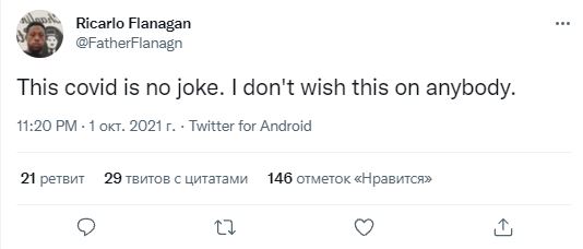 За неделю до смерти актер заявил в Twitter, что заразился коронавирусом, подчеркнув, что «никому бы не пожелал такого».