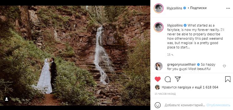 — Никогда не была более счастливой! То, что начиналось как сказка, теперь стало моей вечной реальностью. Я никогда не смогу должным образом описать, насколько неземными были эти прошедшие выходные, но начинать с магии неплохо, — написала Лили.