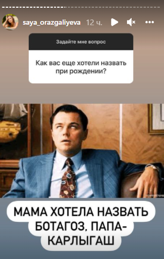 Сая Оразгалиева рассказала в сториз в Instаgram, какие ещё имена рассматривали её родители для неё, передаёт медиа-портал Сaravan.kz.