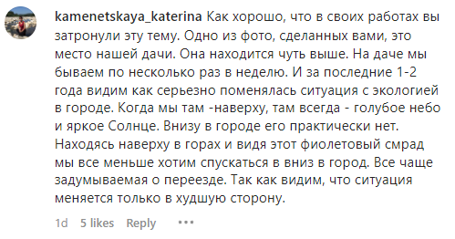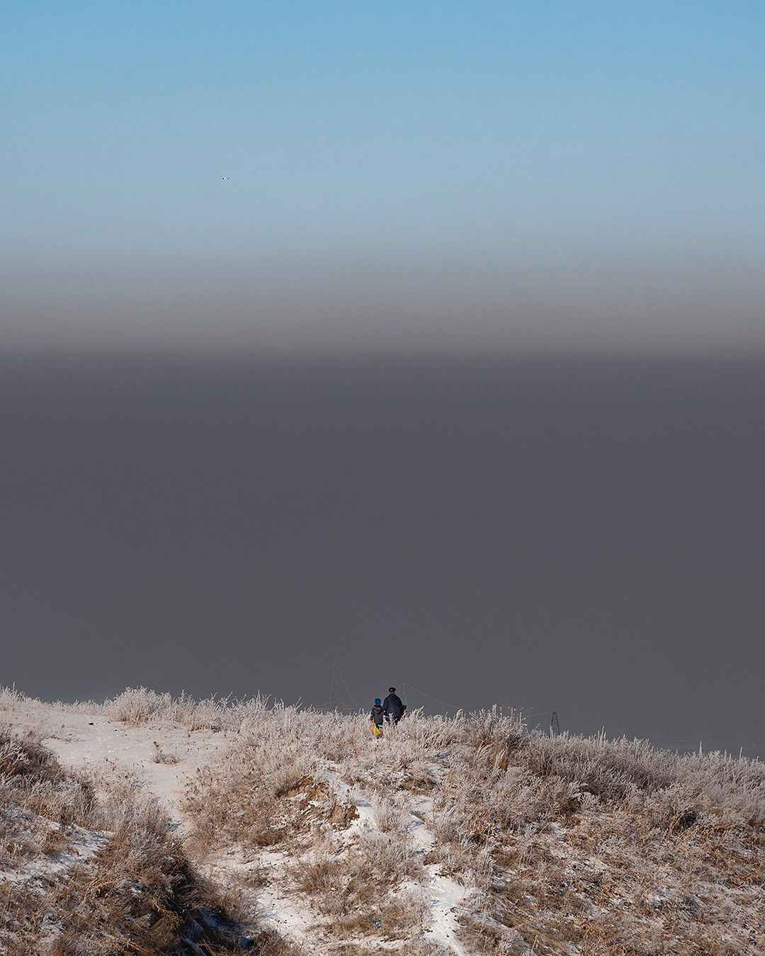 "Люблю снимки со смыслом, рассказывающие историю. Отец привёл сына на холмы, откуда открывается красивый вид на город. Но города они не увидели. Что сказать ребёнку, как объяснить? Стоят они молча и смотрят на «город»", — подписал автор свои фотографии.