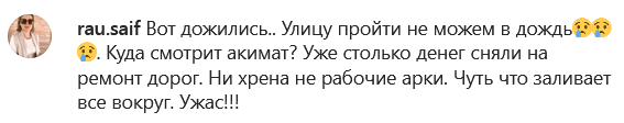Многие обратили внимание на неудовлетворительную работу акимата, который годами не решает проблемы с ливневой канализацией.