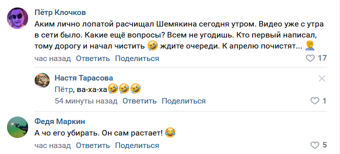— У-у-у, господин Досаев, где ваши чистильщики снега? Понедельник — день тяжелый?