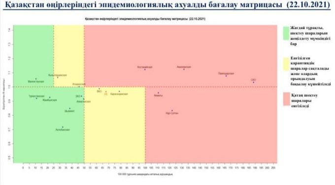 Матрица оценки эпидемиологической ситуации в регионах Казахстана на 22 октября 2021 года: