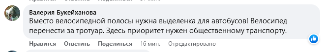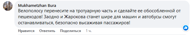 "Значит, бабушки, которые не на велосипедах и самокатах, должны с Утепова до Бухар жырау пешком идти?! Очумели совсем! Кто дал право на такое самоуправство?" — говорится в подписи к снимку.