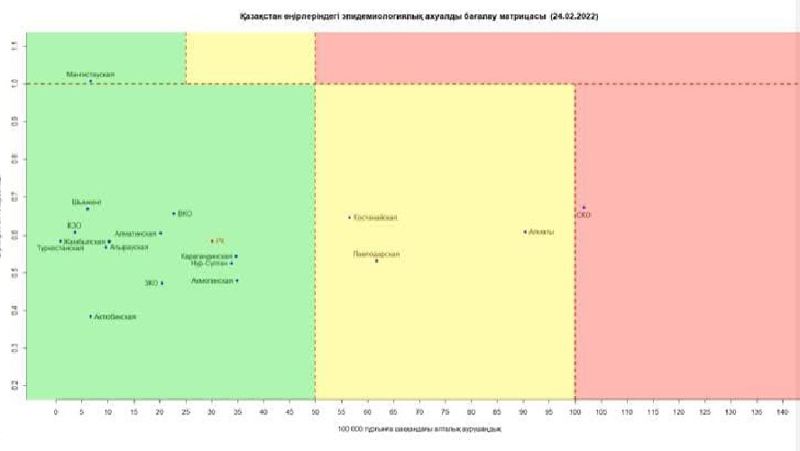 Матрица оценки эпидемиологической ситуации в регионах Казахстана: