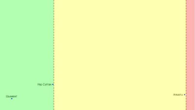 В «зеленой» зоне находятся: Нур-Султан, Шымкент, Алматинская, Актюбинская, Атырауская, Акмолинская, Западно-Казахстанская, Восточно-Казахстанская, Жамбылская, Карагандинская, Костанайская, Кызылординская, Мангистауская, Северо-Казахстанская, Павлодарская, Туркестанская области.