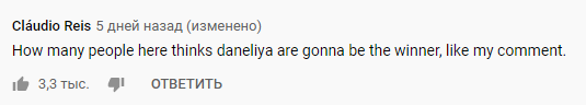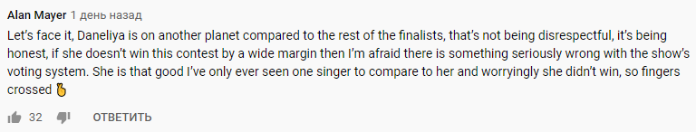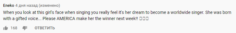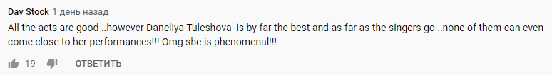 Как можно заметить из этого комментария, теперь у юной казахстанки тысячи фанатов в США. А комментарии в ее поддержку исчисляются сотнями, причем сами американцы активно призывают своих соотечественников проголосовать за Данэлию.