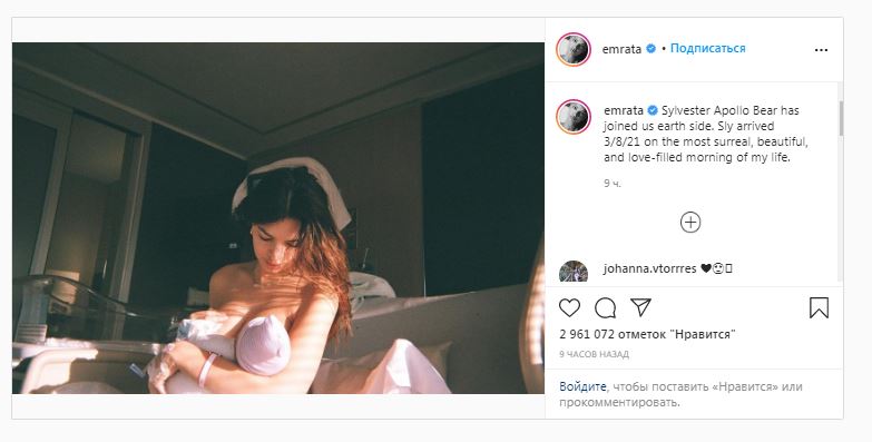 — Слай прибыл 8 марта в самое сюрреалистическое, красивое и наполненное любовью утро в моей жизни, — написала Эмили Ратаковски