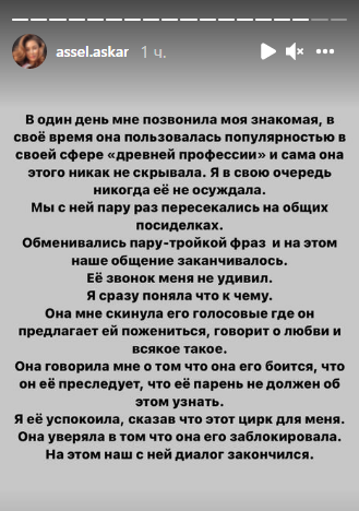 Асель Аскар в сториз в Instagram рассказала новые нелицеприятные подробности о бывшем муже, передаёт медиа-портал Сaravan.kz.