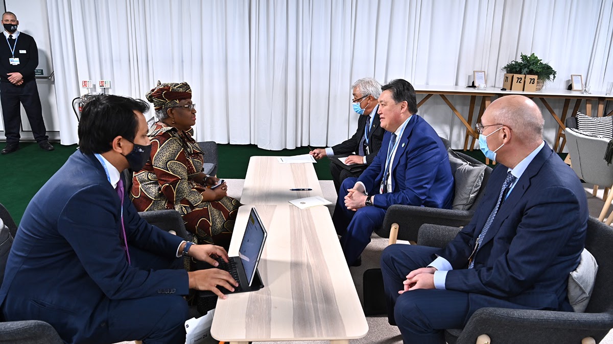 В контексте подготовки Казахстана к председательству на 12-й министерской конференции Всемирной торговой организации (г. Женева, 30 ноября – 3 декабря 2021 года) премьер-министр РК А. Мамин встретился с генеральным директором ВТО Нгози Оконджо-Ивеала и государственным министром внешней торговли Великобритании Энн-Мари Тревельян.