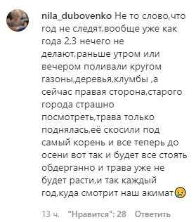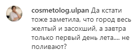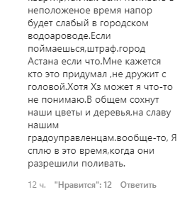 "Засуха в Казахстане? Идёшь по городу, оглядываешься вокруг, и через каждые несколько шагов вот такая картина. Год сухой, осадков практически нет, но мы же живём в век технологий, неужели мы сами не можем полить траву хотя бы? Если каждый будет следить за территорией возле своего дома, магазина, то у нас везде будет порядок. КСК ещё как-то пытаются бороться с этим, бабушки у подъезда тоже выращивают цветочки, поливают там что-то, А почему предприниматели не берут на себя такую ответственность? Неужели так сложно поухаживать за травкой возле магазина? Кроме того что это полезно, так это ещё и очень красиво! Наш акимат часто обязывает магазины к чему-то, так почему бы не обязать следить за зеленью? Деревья, трава.. Нам обязательно нужно следить за этим, потому что мы живём среди степей, и нам очень не хватает зелени", — написали в группе под фотографией высушенного газона.