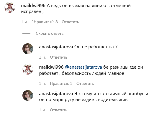 Но очевидцы дополнили картину происшествия: они уточнили, что автобус частный, водитель остался жив, модель довольно новая, при это запах гари от этого конкретного транспортного средства могли почувствовать пассажиры соседнего автобуса.