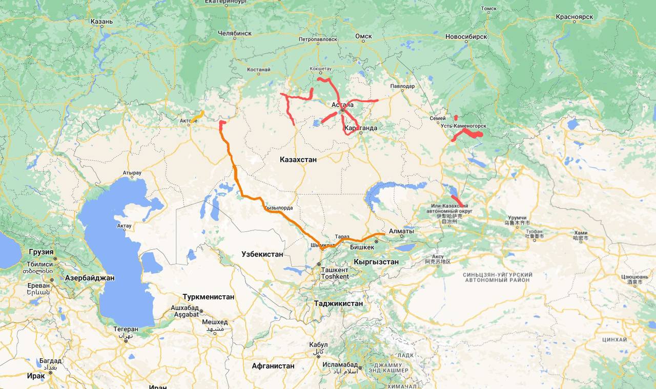 - Восточно-Казахстанская область – 3 участка (211 км)