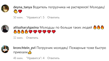 Комментаторы похвалили действия людей, помогавших гасить огонь.