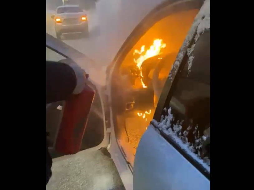 В Усть-Каменогорске во время движения загорелся автомобиль, передает Caravan.kz со ссылкой на YK-news.kz.