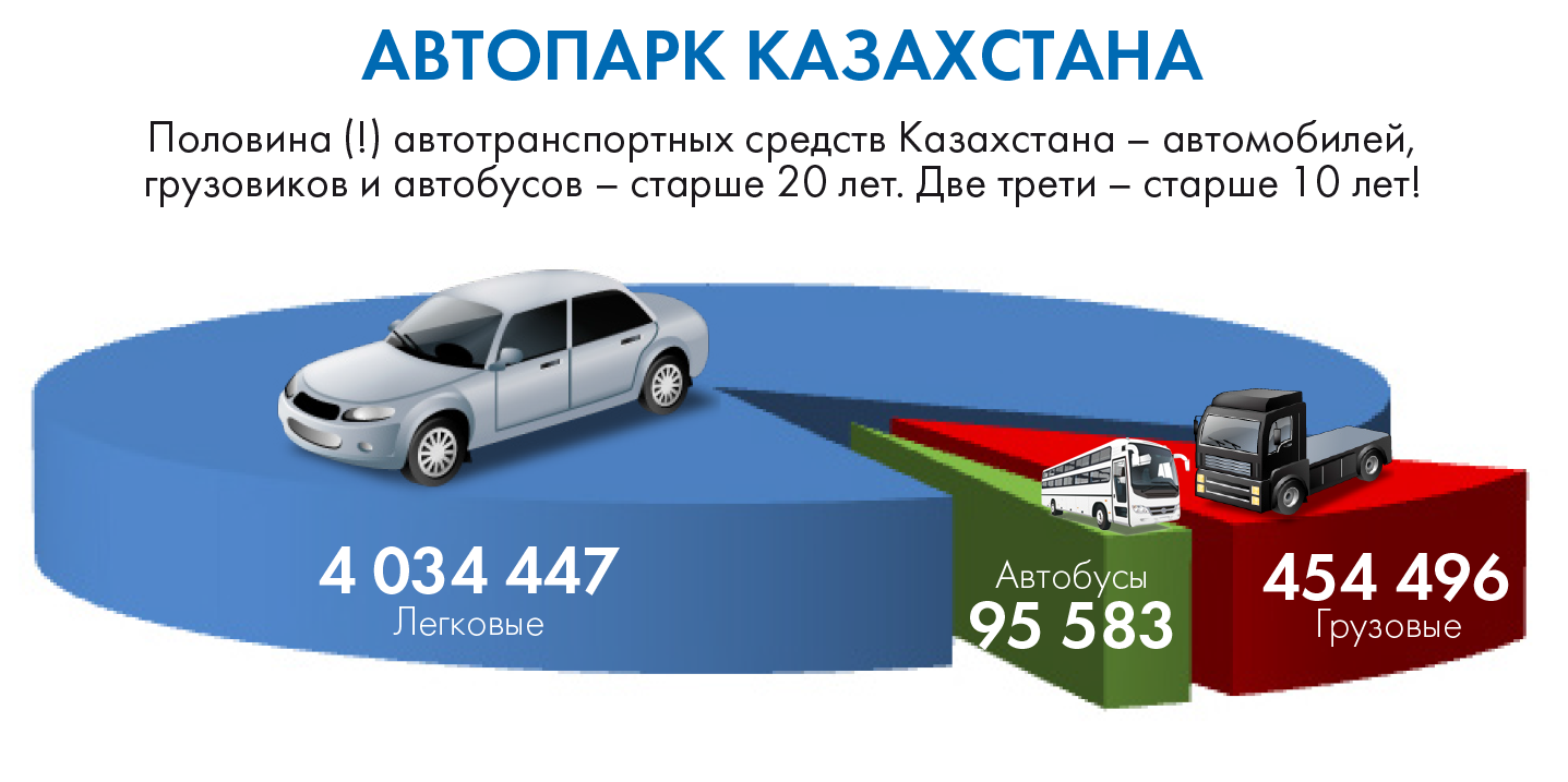 Всего в МВД РК зарегистрировано 4 млн легковых автомобилей, 454 тысячи грузовых автомобилей и 95 тысяч автобусов.