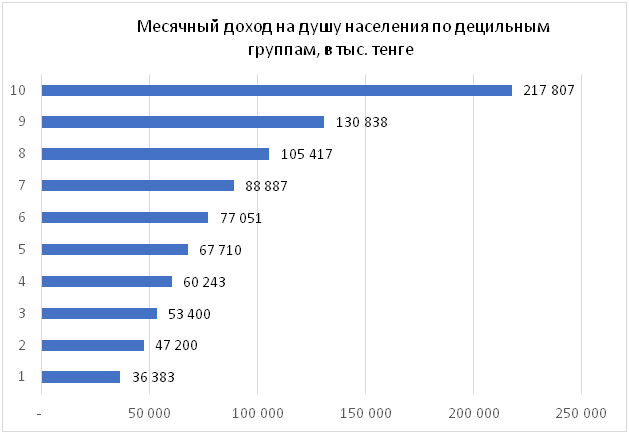 Это показатель месячного дохода казахстанцев. Дециль – означает, что всех нас разбили на 10 равных групп по 10% в каждой.