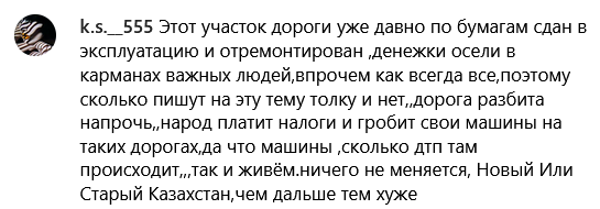 Однако дорога находится в плохом состоянии, передает медиа-портал Сaravan.kz. В ролике паблика taldykorganec.insta_ показана неровная поверхность, на которой автомобиль постоянно подскакивает.