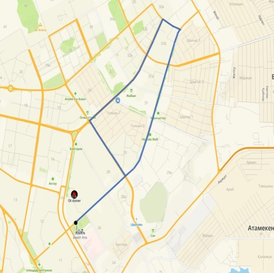 Маршрут автобуса начинается от областной мечети «Бекет Ата», расположенной в 26-м микрорайоне, и охватывает верхние микрорайоны города. Предполагается, что это позволит горожанам безопасно и удобно добираться до своих домов в позднее время.