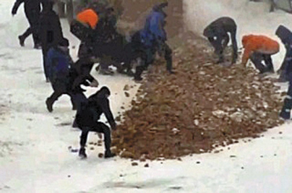 Грузовик высыпал на площадь перед акиматом кучу булыжников, чтобы "мирные протестующие" разнесли ими окна. Фото департамента полиции Актюбинской области