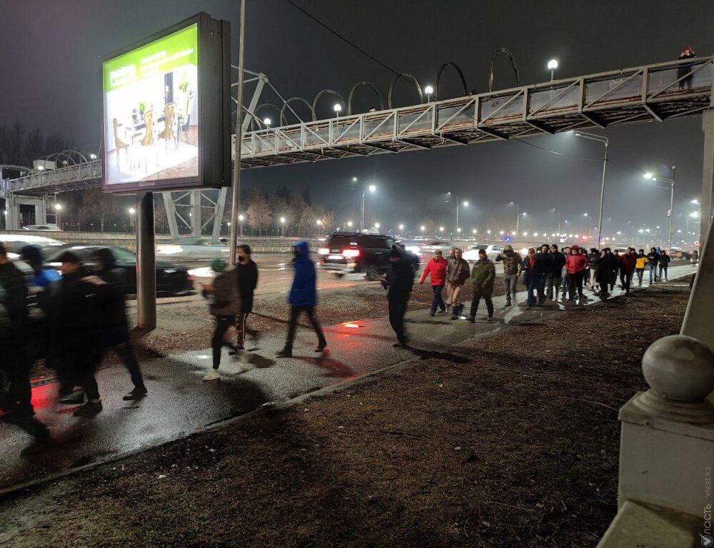 По данным источников, скопление агрессивно настроенных молодых людей наблюдается на пересечении улицы Толе би и Восточной объездной дороги, а также в другом конце города — в микрорайоне Аксай, на пересечении улиц Толе би и Момыш-улы. Эти районы оцеплены полицейскими и военными. Оттуда доносятся звуки взрывов и яркие вспышки.