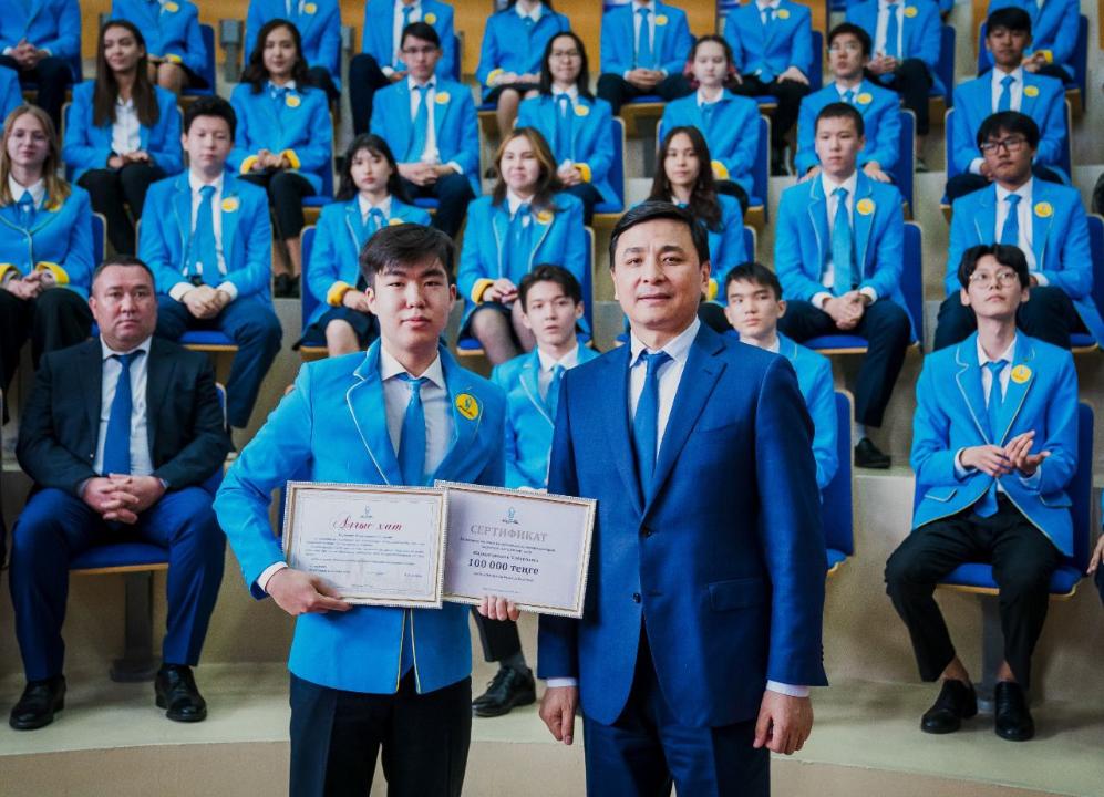 В конце встречи побеседовали с нашими выпускниками, победителями международных и республиканских олимпиад. Наша команда ежегодно на республиканских олимпиадах удостаивается звания «Лучшая олимпийская команда». В этом году наша сборная завоевала рекордное количество медалей – 93 призовых места. Это все труд учителей, самих школьников и их родителей.