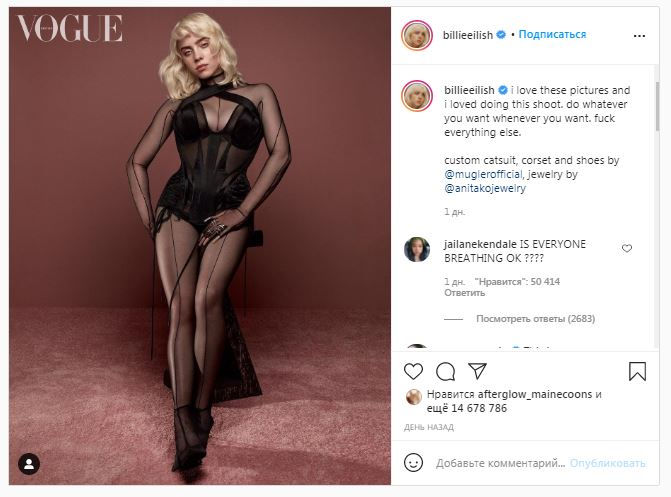 Американская певица Билли Айлиш впервые снялась в откровенной фотосессии для глянца. Фото она опубликовала в Instagram, пишет Корреспондент.net